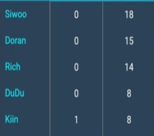 LCK杯单杀榜:Siwoo第一18,Doran第二15,Kiin八次