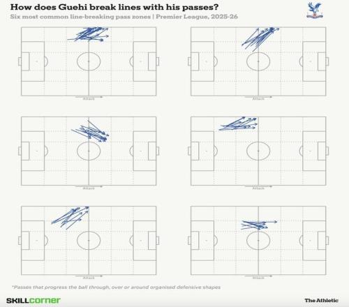 在水晶宫,格伊经常出现在三中卫体系中的左中卫位置。他的很多向前传球,都会分到边路,让米切尔在翼卫位置上拉开空间。不过,随着他在面对阵地防守时获得更多触球机会,草莓视频下载APP已经看到他在“穿透性向前传球”方面具备进一步提升的潜力——他完全有能力用双脚在中路关键区域找到队友。