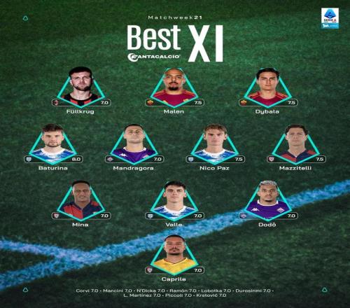 意甲第21轮最佳阵:迪巴拉、马伦、菲尔克鲁格、尼科帕斯入选_24直播网