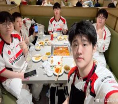 哥哥的参团率太高了!TES官方赛后晒选手聚餐返图:坚哥带上杰克吃一口_24直播网