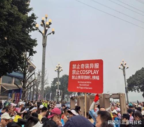 从去年底以来,我参加的多场赛事,赛前收到的短信中,都会专门强调:比赛中不得穿着奇装异服。进入集结区前,也都能看到显著的提示标语。