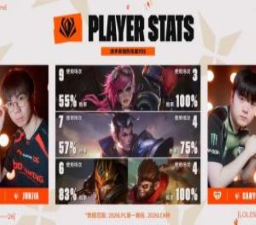 赛事官方分享JDG对阵GEN赛前数据:Canyon英雄整体胜率高于Junjia