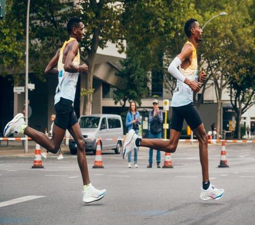 ▲2022年9月柏林马拉松的季军Tadu Abate(左)在比赛中,他脚穿的飞电3 Ultra 是中国跑鞋第一次站上世界六大马拉松赛事领奖台。