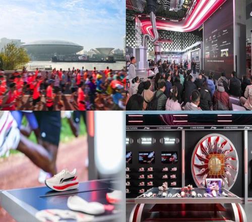 这场战役是从去年上海马拉松正式对外发起的。上马前的体博会第一天早晨七点半,距离正式开馆还有两小时,李宁就举办了发布会。与此同时,李宁在黄浦江边设置的“飞电6涡轮号”巨鞋装置同样显眼,展现出了一副过去多年不曾见的主动进攻姿态,在国际品牌林立的上海,攻擂意图明显。最终在这场上马完赛的“破三”跑者中,飞电穿着率首次拿到第一。