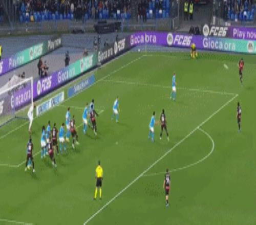 第79分钟,孔蒂上演神换人好戏,阿利松-桑托斯左路突破横敲,奥利韦拉插上传中,德温特解围变成乌龙助攻,刚刚替补登场的波利塔诺笑纳大礼,后点凌空抽射洞穿迈尼昂的十指关,那不勒斯打破僵局,1-0!