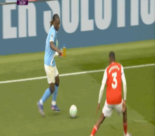 阿森纳继续在前场进行逼抢,继续着对曼城的压迫态势,但第20分钟这次逼抢,本来得手,却在因卡皮耶的脚下出现失误,这让曼城看到了打快攻的机会,阿森纳在后场的确只剩寥寥兵力,但塞门约脚下一滑,让失误错进错出: