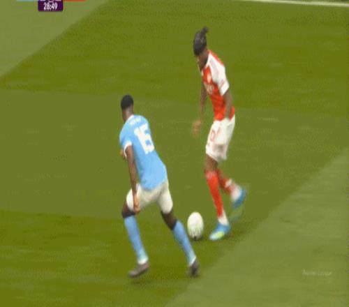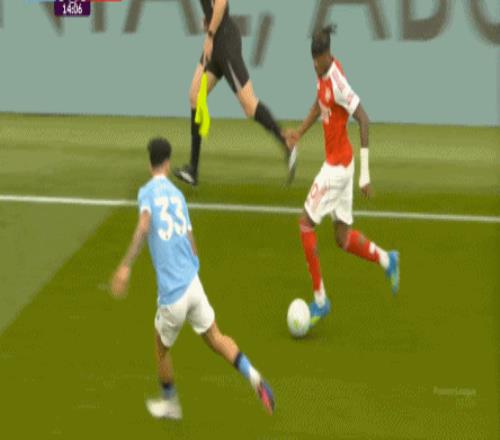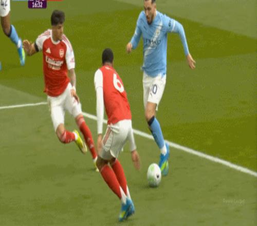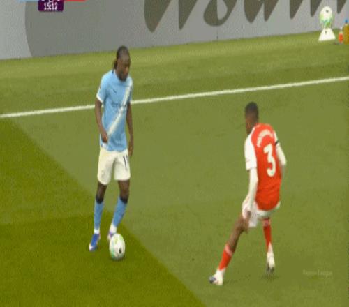 这一球的根源,其实就是阿森纳的逼抢确实是让曼城球员有所忌惮,所以在这次后场界外球,努内斯没有按照常规思路抛给拥有身体优势的哈兰德,选择另辟蹊径交给多纳鲁马,结果后者在哈弗茨的逼抢下,先停再传,就被哈弗茨赶上了: