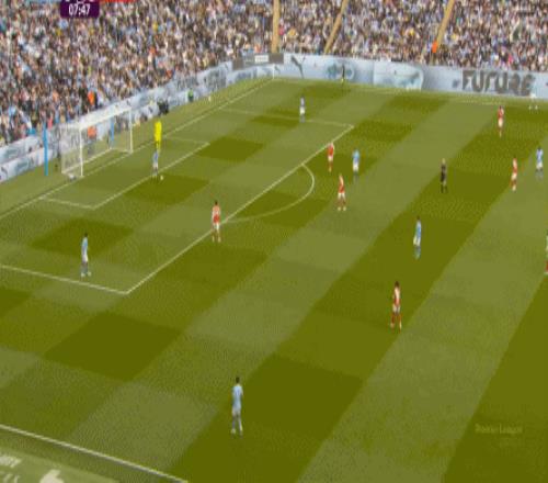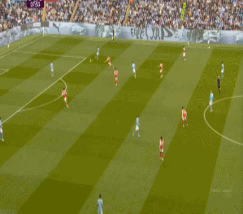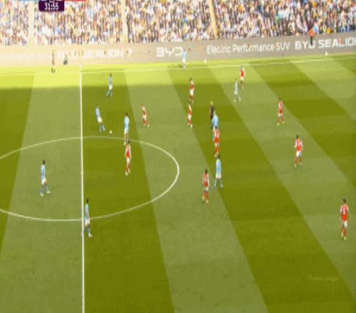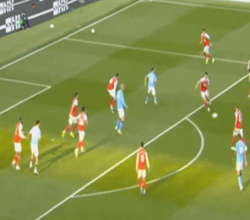更不用说,还可以直接找中路的哈兰德,从而打阿森纳一个措手不及: