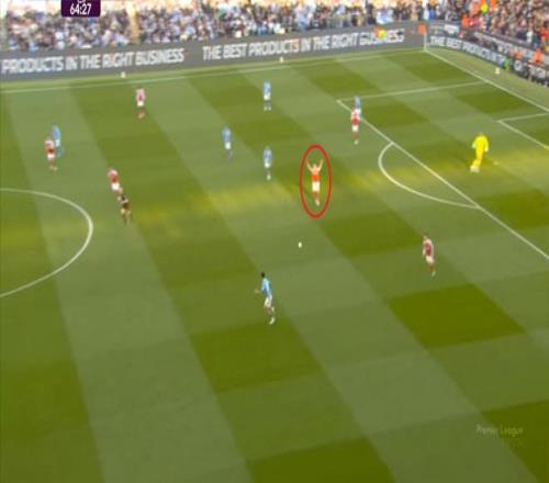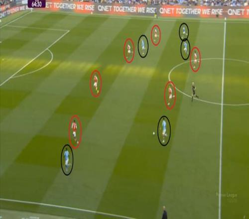 于是,阿森纳在前场顺利防下了曼城的出球: