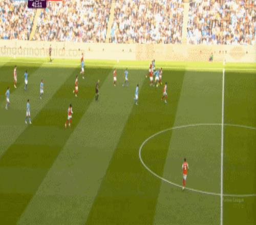 不过,双方虽然在限制和反限制这一环节打得有来有回,但到了具体的阵地战,曼城还是比阿森纳的优势要明显多一点。