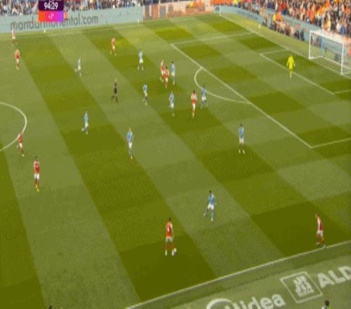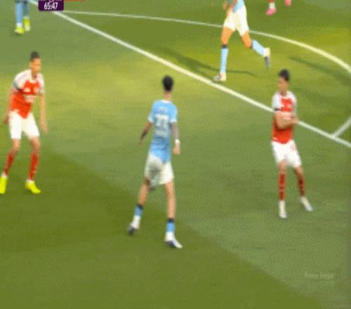 这个时候,厄德高再疯狂回追,你已经限制不住了,所以在曼城打进左肋之后,罗德里在前点牵制住了因卡皮耶,漏到后面,便成为了哈兰德和加布里埃尔的一对一: