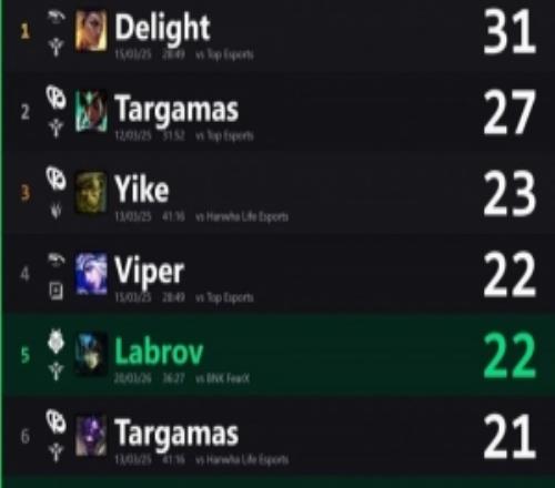 先锋赛历史辅助选手单场比赛助攻数排行:Delight31个第一